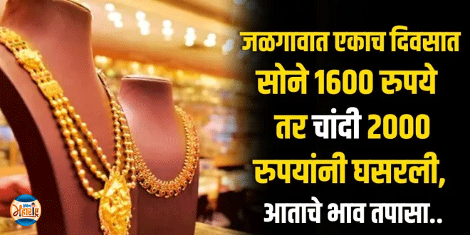 जळगावच्या सुवर्णपेठेत एकच दिवसात सोने दरात तब्बल 1600 रुपयांची घसरण झाली आहे. दुसरीकडे चांदी दरातही घसरण झाली. चांदीचा प्रति किलोचा दर 2000 रुपयांनी घसरला आहे. यामुळे ऐन लग्नसराईदरम्यान दर घसरल्याने ग्राहकांना खरेदीची सुवर्णसंधी आहे.