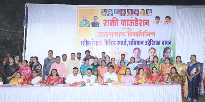 जळगाव (29 जानेवारी 2025) : जळगावातील विवेकानंद नगरातील शक्ती फाऊंडेशनच्या संस्थापक अध्यक्ष भारती जि.रंधे यांच्यातर्फे प्रजासत्ताक दिनानिमित्त विविध कार्यक्रमांचे आयोजन करण्यात आले. प्रामुख्याने संविधान गौरव अभियान अंतर्गत सामूहिक संविधान उद्घोषिका वाचन तसेच महिलांसाठी विविध स्पर्धा घेऊन भेट वस्तू देण्यात आले.