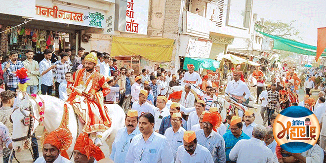 शहरातील जिजाऊ नगरात ाजमाता जिजाऊ यांच्या प्रतिमेचे पूजन करून मिरवणुकीला सुरुवात झाली. यावेळी दीपक सुरवडकर यांनी छत्रपती शिवाजी महाराजांची प्रतीकात्मक वेशभूषा साकारली तर पवन महाजन, जितेंद्र वानखेडे, निलेश महाजन आणि कन्हिया भारते यांनी मावळ्यांच्या वेशभूषेत सहभाग घेतला. मिरवणुकीत स्थानिक लोकप्रतिनिधी, पदाधिकारी आणि युवक भगव्या टोप्या परिधान करून सहभागी झाले होते. शहरातील प्रमुख मार्गांवरून ही भव्य मिरवणूक छत्रपती शिवाजी चौक येथे समाप्त झाली.