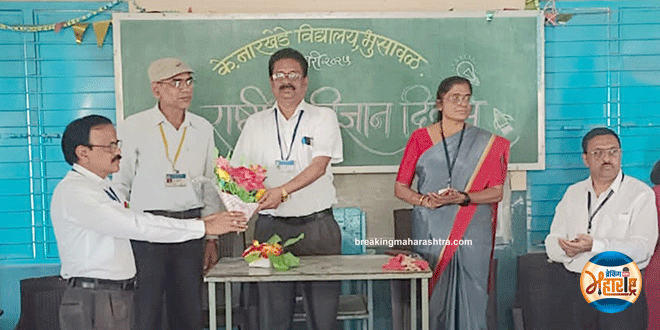 भुसावळ (3 मार्च 2025) : शहरातील के.नारखेडे विद्यालयात राष्ट्रीय विज्ञान दिन उत्साहात साजरा करण्यात आला. व्यासपीठावर विद्यालयाचे प्रभारी मुख्याध्यापक वाय.एन.झोपे, पर्यवेक्षिका संगीता अडकमोल, पर्यवेक्षक सुनील राणे, एस.पी.पाठक उपस्थित होते.