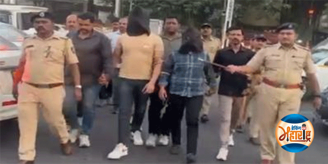 Large house lights filled the square, causing a slight suspicion : Police created chaos by making noise पुणे (10 मार्च 2025) : विद्येच्या माहेरघरात बड्या घरच्या दिवट्यांनी भर चौकात लघूशंका केली होती. याप्रकरणाचा व्हिडिओ व्हायरल होताच संतापाची लाट पसरताच आरोपींना अटक करण्यात आली. अटक करण्यात आलेल्या दोन तरुणांची पुणे पोलिसांनी सोमवारी धिंड काढली.