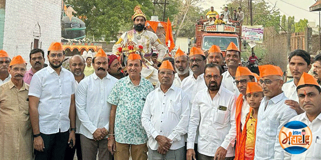 यावल (19 मार्च 2025) : शहरात सोमवार, 17 मार्च रोजी तिथी नुसार छत्रपती शिवाजी महाराज यांची जयंती उद्धव बाळासाहेब ठाकरे शिवसैनिकांकडून साजरी करण्यात आली. या निमित्ताने शहरातील सातोद रस्त्यावरून भव्य मिरवणूक काढण्यात आली. मान्यवरांच्या हस्ते पूजन झाल्यानंतर सजीव देखाव्यांसह शहरातून काढण्यात आलेल्या मिरवणुकीने नागरीकांचे लक्ष वेधले.