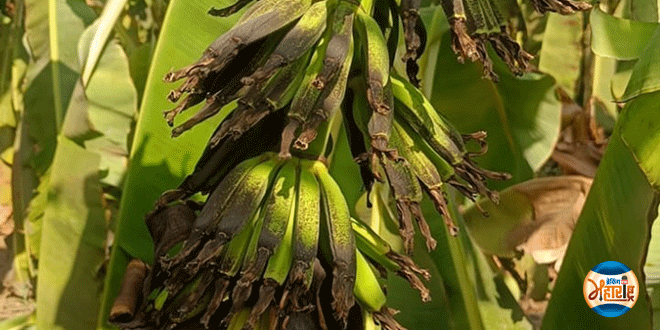 Weeds hit standing banana plantation : Sakegaon farmer loses Rs. 5 lakh भुसावळ (13 एप्रिल 2025) : शहराजवळील साकेगाव शिवारामध्ये रेल्वे लाईनीला लागून असलेल्या अजीम सलीम पटेल या शेतकर्‍याच्या शेतातील केळी खेडावर भामट्याने रात्रीच्या वेळेस तन नाशक मारल्याने शेतकर्‍याचे सुमारे पाच लाखांचे नुकसान झाले. हाता-तोंडाशी आलेला घास हिरावला गेल्याने शेतकर्‍यावर आर्थिक संकट कोसळले आहे. या प्रकरणाची सखोल चौकशी व्हावी व भरपाई मिळावी, अशी मागणी शेतकर्‍यांकडून करण्यात आली आहे.