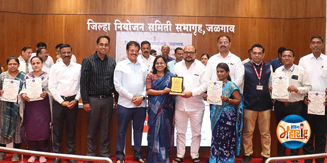 The Minister of Agriculture praised the Yaval Tehsildars for providing revenue status to various villages, settlements and padas यावल (27 एप्रिल 2025) : यावल तहसीलदार मोहनमाला नाझीकरसह त्यांच्या सहकारी अधिकारी, कर्मचार्यांनी यावल तालुक्यातील विविध वाडी, वस्ती व पाड्यांना महसूल गावाचा दर्जा मिळण्यासाठी प्रशासनाकडे आवश्यक पाठपुरावा केला व त्यांना महसुली दर्जा मिळवून दिल्याने त्यांच्या या कार्याची दखल घेत शुक्रवारी एका कार्यक्रमात जळगावात पालकमंत्र्यांच्या हस्ते त्यांचा गौरव करण्यात आला व उत्कृष्ट तहसील कार्यालय असा पुरस्कार देण्यात आला.
