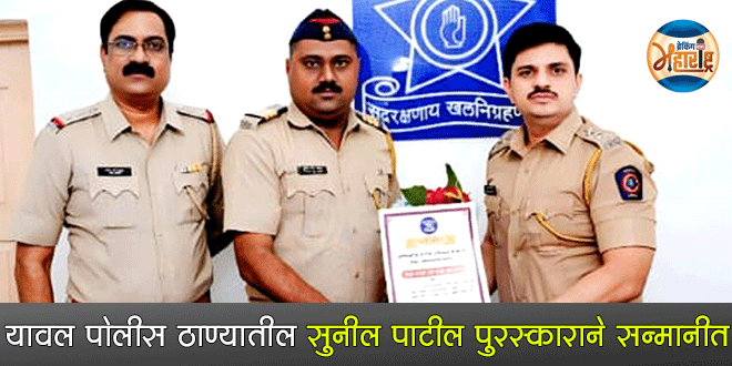 यावल पोलीस ठाण्याचे हवालदार सुनील पाटील गुन्हे तपासात उत्कृष्ट कार्य केल्याबद्दल सन्मानीत