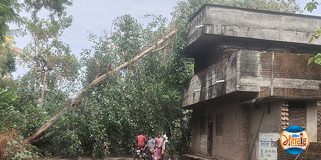 वादळी पावसात भालोद गावात वृक्ष कोसळले
