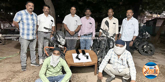 Jalgaon Crime Branch’s performance : Two village gangs along with a suspect from MP caught in the net जळगाव (9 जून 2025) : जळगाव गुन्हे शाखेने एमपीतील दोन संशयीतांना दोन गावठी कट्टे विक्रीसाठी आणताना पकडले असून त्यांच्याविरोधात गुन्हा दाखल करण्यात आला. आरोपींच्या ताब्यातून दोन गावठी कट्टे, दोन मोटारसायकली आणि दोन मोबाईल हँडसेट असा एकूण 1 लाख 70 हजार रुपयांचा मुद्देमाल जप्त करण्यात आला.