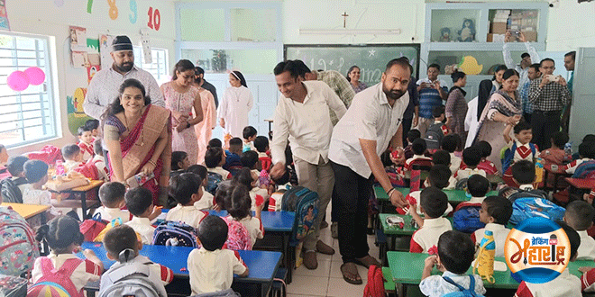 भुसावळ शहरातील नामांकीत अशा सेंट अलॉयसीस शाळेतील ज्युनियर केजीच्या विद्यार्थ्यांचे शाळेच्या पहिल्याच दिवशी भाजपाचे भुसावळ शहर सरचिटणीस श्रेयस शेखर इंगळे व मित्र परिवारातर्फे गुलाब पुष्प देवून स्वागत करण्यात आले.