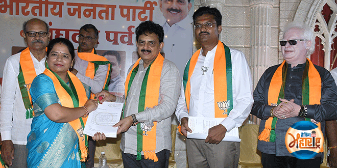 Appointment letter distributed by Textile Minister Sanjay Savkare भुसावळ (3 जुलै 2025) : भारतीय जनता पार्टीच्या संघटन पर्व कार्यक्रमांतर्गत भुसावळातील स्टार लॉनमध्ये महाराष्ट्र राज्य वस्त्रोद्योग मंत्री संजय सावकारे यांच्या नेतृत्वात भाजपा शहर कार्यकारिणी घोषित झाल्यानंतर पदाधिकार्‍यांना नियुक्तीपत्र देण्यात आले. यावेळी भुसावळ भाजपा उत्तर शहराध्यक्ष संदीप सुरवाडे यांनी शहर कार्यकारणीची तसेच विविध आघाडी मोर्चांच्या अध्यक्षांची नावे जाहीर केली.