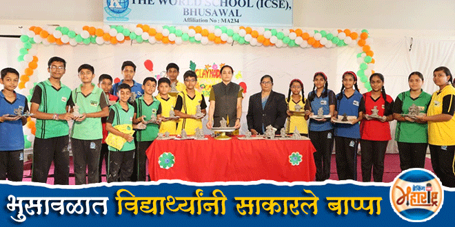 Students make Ganesh idols from clay : Workshop at The World School भुसावळ (21 ऑगस्ट 2025) : कोलते फाउंडेशन एज्युकेशनल इन्स्टिट्यूशन संचलित ‘द वर्ल्ड स्कूल’ मध्ये शाडू मातीपासून गणेशमूर्ती तयार करण्यावर कार्यशाळा घेण्यात आली. इयत्ता पाचवी ते आठवीच्या विद्यार्थ्यांनी विविध गणेशमूर्ती तयार केल्या