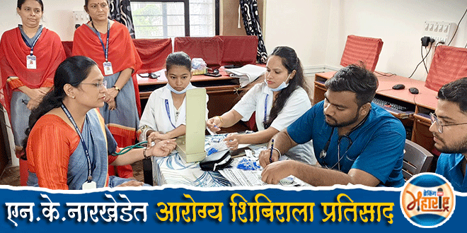 Spontaneous response to health check-up camp at N.K. English School, Bhusawal भुसावळ (23 ऑगस्ट 2025) : शहरातील एन.के.नारखेडे इंग्लिश स्कूलमध्ये शहरातील गोल्डन अवर हॉस्पीटलच्या विद्यमाने मोफत आरोग्य तपासणी शिबिराचे शनिवार, 23 ऑगस्ट रोजी सकाळी 9 ते दुपारी एक दरम्यान आयेाजन करण्यात आले. या शिबिराला स्कूलमधील शिक्षक-शिक्षकेतर कर्मचार्यांनी उत्स्फूर्त प्रतिसाद दिला. यावेळी 60 शिक्षक-शिक्षकेतर कर्मचार्यांची मोफत आरोग्य तपासणी करून औषधोपचारही करण्यात आले.
