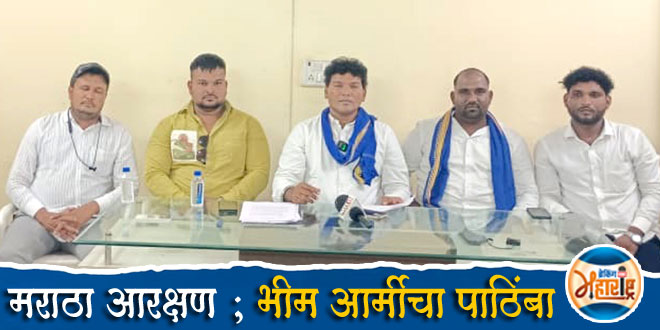 Bhim Army in Bhusawal supports Maratha community reservation demand भुसावळ (1 सप्टेंबर 2025) : मराठा समाजाला आरक्षण मिळावे या मागणीला आता नव्या राजकीय पाठिंब्याची जोड मिळाली आहे. भीम आर्मी व आजाद समाज पार्टीने मराठा समाजाच्या आरक्षणाच्या लढ्याला खुलेआम पाठिंबा जाहीर केला आहे शिवाय आगामी स्थानिक स्वराज्य संस्थांच्या निवडणुकीत आपले उमेदवार उतरवण्याची घोषणा केली. जळगाव जिल्ह्यासह राज्यभर सामाजिक न्यायासाठी कार्यरत असलेल्या या संघटनांनी लोकशाही मूल्यांची जोपासना करत, सर्वसामान्यांचा आवाज बुलंद करण्याचे धोरण स्वीकारले आहे.
