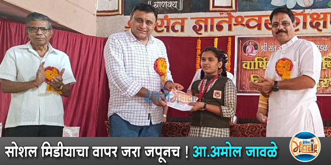 Students should use social media properly: MLA Amol Javale भुसावळ (17 सप्टेंबर 2025) : शालेय जीवनात विद्यार्थ्यांनी सोशल मीडियाचा योग्य वापर करावा. आज सगळीकडे सोशल मीडियाचा प्रभाव आहे. त्याचा चांगल्या कामासाठी विद्यार्थ्यांनी वापर करावा. जीवनात प्रत्येकाने स्वप्न बघितले पाहिजे व त्यासाठी आपल्यातल्या क्षमतांचा योग्य वापर करून मेहनत घेतली पाहिजे, असे मत श्री संत ज्ञानेश्वर शिक्षण मंडळ भुसावळच्या वार्षिक पारितोषिक वितरण समारंभ प्रसंगी यावल-रावेरचे आमदार अमोल जावळे यांनी व्यक्त केले.