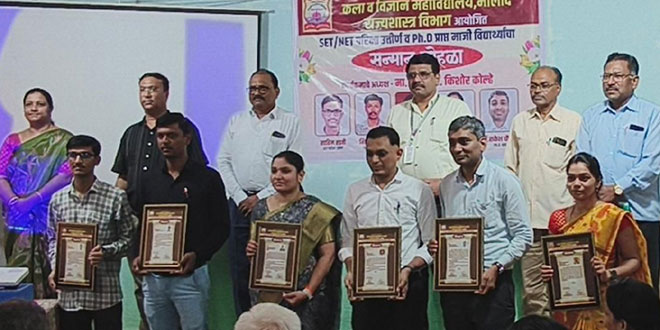 कला व विज्ञान महाविद्यालय, भालोद येथील राज्यशास्त्र विभागाच्या वतीने महाविद्यालयातील सेट, नेट परीक्षा उत्तीर्ण आणि पीएचडी प्राप्त माजी विद्यार्थ्यांचा सन्मान सोहळा व गुणगौरव समारंभ नुकताच संपन्न झाला. कार्यक्रमाच्या अध्यक्षस्थानी महाविद्यालयाचे प्राचार्य डॉ. किशोर कोल्हे हे होते.