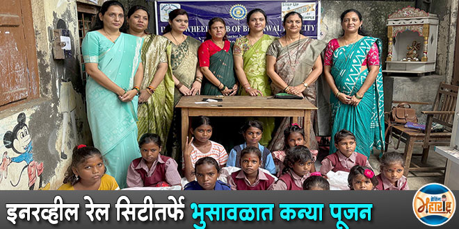 Innerwheel Rail City performed ‘Kumari Ka Pujan’ for the daughters of brick kiln workers भुसावळ (27 सप्टेंबर 2025) : शहरातील इनरव्हील क्लब ऑफ भुसावळ रेल सिटीतर्फे दत्तक घेतलेल्या नगरपालिका शाळा क्रमांक दोनमधील कुमारीकांचे विधीवत पूजन करण्यात आले.