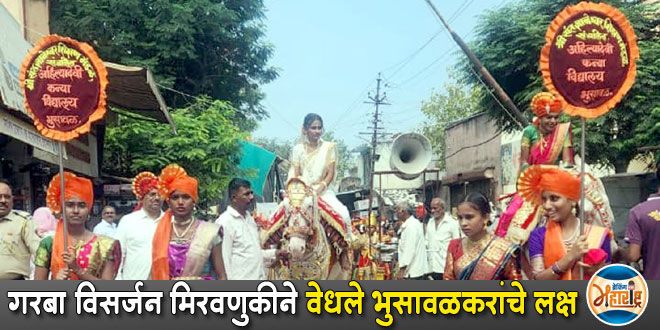 अहिल्यादेवी कन्या विद्यालयाच्या शारदोत्सवाच्या विसर्जन मिरवणुकीने वेधले भुसावळकरांचे लक्ष
