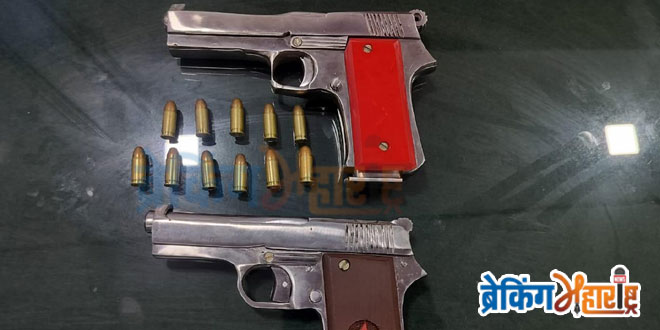 आरोपींकच्या झडतीत दोन गावठी पिस्तुले, 11 जिवंत काडतुसे तसेच चारचाकी कार मिळून तीन लाख 61 हजारांचा मुद्देमाल जप्त करण्यात आला.