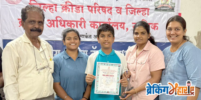 Viaan Talreja selected in Nashik division team जळगाव (29 ऑक्टोबर 2025) : महाराष्ट्र युवा क्रीडा संचालन आयोजीत जिल्हा क्रीडा परिषद व जिल्हा क्रीडा अधिकारी कार्यालय नाशिकतर्फे आयोजीत विभागीय कॅरम स्पर्धा नाशिक येथे 16 ऑक्टोबरला पार पडली. नाशिक, जळगाव, धुळे, नगर यासह पुणे विभागातील खेळाडूंनी यामध्ये सहभाग घेतला होता. जळगाव जिल्ह्यात 14 वर्षाखालील गटात विआन सुनील तलरेजा याने सहभाग घेतला होता. क्वाटर फायनल मध्ये विआन तलरेजाने साईल सोनवणे अनुभूती इंग्लीश मिडीअम स्कूल याला नमविले. त्यानंतर सेमी फायनला सोहम तुषार पवार या नाशिकच्या खेळाडूला हरविले. यानंतर अंतिम सामन्यात बारयाल अली गुलाम अली मालेगाव याला नमवून विजेतेपद पटकाविले. शालेय स्पर्धेत जी. एच. रायसोनी पब्लीक स्कूलचा विद्यार्थी विआन तलरेजा याला प्रिती जाजू, भूषण यांच्याहस्ते प्रमाणपत्र देऊन गौरविण्यात आले.