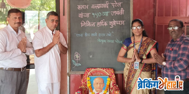 यावेळी मुख्याध्यापिका प्रणिता चौधरी, मुख्याध्यापक मनोज भोसले , तसेच महेश चोपडे सर उपस्थित होते. कार्यक्रमाची सुरुवात राष्ट्रगीताने झाली. त्यानंतर सरदार वल्लभभाई पटेल यांच्या प्रतिमेला पुष्पांजली अर्पण करून आदर व्यक्त करण्यात आला. अध्यक्षांनी आपल्या मनोगतात सरदार वल्लभ भाई पटेल यांच्या कार्याचा गौरव करत राष्ट्रीय एकतेचे महत्व अधोरेखित केले. सूत्रसंचालन मनोज भोसले सरांनी केले. त्यात त्यांनी देशाच्या अखंडतेसाठी योगदान देण्याचा संकल्प व्यक्त केला.