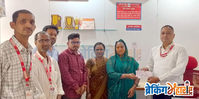 सांगवी बुद्रुकच्या युनियन बँकेतील खातेदाराच्या वारसाला विमा धानादेशाचे वितरण