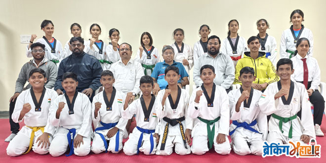 जळगाव (11 नोव्हेंबर 2025) : जळगाव जिल्हा तायक्वांडो असोसिएशन व जैन स्पोर्टस् अकॅडमीच्या वतीने अनुभूती निवासी स्कूल येथे आज कॅडेट (12 ते 14 वयोगटातील) मुलं आणि मुली निवड चाचणी घेण्यात आली होती. या स्पर्धेत रावेर, बोदवड, जळगाव येथील खेळाडूंनी सहभाग नोंदविला. यामध्ये जैन स्पोर्टस् अकॅडमी चे 8 खेळाडूंची 13 ते 15 नोव्हेंबर रोजी अहिल्यानगर येथे होणार असलेल्या 8 व्या महाराष्ट्र राज्य कॅडेट तायक्वांडो स्पर्धेसाठी निवड झाली आहे. साधना देशमुख, समिक्षा पवार, भाविका पाटील, दिया देशपांडे, शिनय जैन, गुरु कारंडे, मयुर पाटील, अबिर चौबे या जैन स्पोर्टस अॅकडमीच्या खेळाडूंची निवड करण्यात आली आहे.