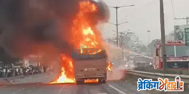 Vehicles catch fire after horrific accident in Pune: Nine people die पुणे (13 नोव्हेंबर 2025) : ब्रेक फेल झालेला कंटेनर इतर वाहनांवर आदळून कारवर आदळल्यानंतर सीएनजीचा स्फोट घडल्यानंतर तब्बल नऊ जणांचा मृत्यू झाल्याची घटना पुण्यात घडली. अपघातांतन पोलिसांनी तात्काळ घटनास्थळी धाव घेतली तसेच अग्निशमन दलाच्या गाड्याही नवले पुलावर तातडीने पोहोचल्या. अपघातातील सर्व जखमींना जवळच्या रुग्णालयात दाखल करण्यात आले असून त्यांची प्रकृती सध्या स्थिर असल्याचे सांगण्यात येत आहे.