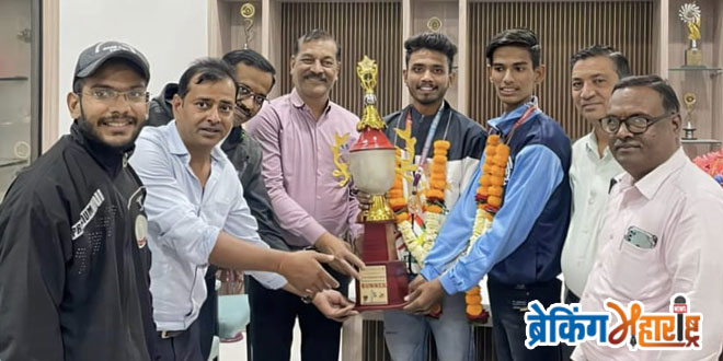 Players from Nahata College, Bhusawal, won silver medals in the Mallakhamb tournament. भुसावळ (15 नोव्हेंबर 2025) : चेन्नई विद्यापीठात अखिल भारतीय मलखांब विद्यापीठ स्पर्धा झाली. त्यात भुसावळ कला, विज्ञान आणि वाणिज्य महाविद्यालयातील मल्लखांब खेळाडू सचिन जोहरे आणि तुषार जोहरे यांनी उत्कृष्ट कामगिरी करत अखिल भारतीय विद्यापीठ स्तरावर रौप्य पदके पटकावत महाविद्यालयासह विवद्यापीठाचे नाव उंचावले.