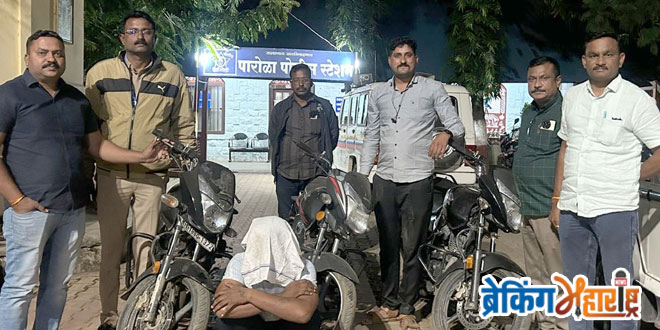 A thief from Dhule who stole three two-wheelers from Parola area including Jalgaon taluka was arrested. जळगाव (15 नोव्हेंबर 2025) : जळगाव तालुका पोलिस ठाणे हद्दीसह पारोळा पोलिस ठाणे हद्दीतून चोरी गेलेल्या दुचाकी धुळे जिल्ह्यातील लामकानी येथील संशयीताकडे असल्याची माहिती जळगाव गुन्हे शाखेला मिळाल्यानंतर पथकाने संशयीताच्या मुसक्या बांधल्या. मनोज पाडुरंग गायकवाड (लामकानी, ता.धुळे) असे अटकेतील आरोपीचे नाव असून त्याच्याकडून महागड्या तीन दुचाकी जप्त करण्यात आल्या.