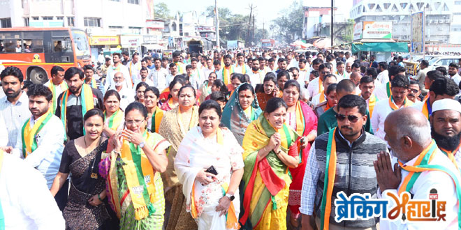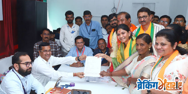 चाळीसगाव नगराध्यक्षपदासाठी शक्ती प्रदर्शनानंतर भाजपा उमेदवार प्रतिभा चव्हाण यांनी दाखल केले नामांकन
