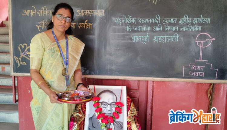 भुसावळ (26 नोव्हेंबर 2025) : भुसावळ तालुक्यातील साकेगाव येथील श्री स्वामीनारायण गुरुकुल विद्यालयात 26 नोव्हेंबर रोजी संविधान दिन साजरा करण्यात आला. अध्यक्षस्थानी शाळेतील मुख्याध्यापिका प्रणिता चौधरी होत्या. प्रमुख पाहुणे गोपाळ भगत होते. मुख्याध्यापक मनोज भोसले, अभिष सरोदे, मुख्याध्यापिका उज्वला धांडे या उपस्थित होत्या.
