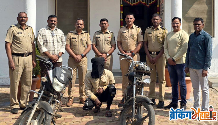 A thief, along with two stolen motorcycles, was caught in the net of Mehunbare police चाळीसगाव (20 जानेवारी 2026) : मेहुणबारे पोलिसांनी चोरीच्या दोन दुचाकींसह चोरट्याला अटक केली. आरोपीकडून चोरीच्या दोन मोटारसायकल जप्त करण्यात आल्या.