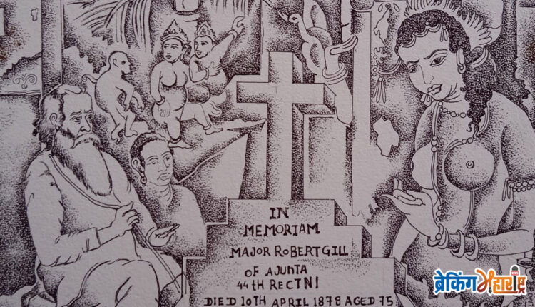 चोपडा (9 एप्रिल 2026) : जागतिक अजिंठा लेणीचा शोध लावणार्या स्व.मेजर रॉबर्ट गील यांची शुक्रवार, 10 एप्रिल पुण्यतिथी असल्याचे औचित्य साधून चोपडा येथील चित्रकार अनिलराज पुनमचंद पाटील यांनी स्व.मेजर रॉबर्ट गील यांच्या जीवनावर आधारित पेन इंकच्या साह्याने स्टिपलिंग पद्धतीने छायाचित्र रेखाटली आहे. स्व.गील यांना या छायाचित्राच्या माध्यमातून त्यांनी चित्रांजली देऊन अभिवादन केले आहे. या चित्रात रॉबर्ट गीलल यांचे समाधी स्थळ दाखवून मागच्या बाजुला अजिंठा लेणी दर्शवण्यात आली आहे.