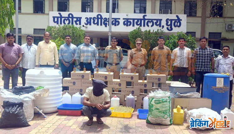 धुळे स्थानिक गुन्हे शाखेचे पोलीस निरीक्षक श्रीराम पवार यांना धुळे शहरातील अंबिका नगर परिसरातील एका पत्र्याच्या शेडमध्ये काही लोक बनावट दारू तयार करीत असल्याची माहिती मिळाल्यानंतर त्यांनी पथकासह गुरुवार, 9 एप्रिल 2026 रोजी मध्यरात्री या ठिकाणी छापा टाकला. यावेळी रवींद्र रमेश महाजन (27, रा.दसरा मैदान, धुळे) हा आपल्या साथीदारासह मानवी जीविताला धोका निर्माण होईल अशी बनावट दारू तयार करताना रंगेहाथ गवसला.