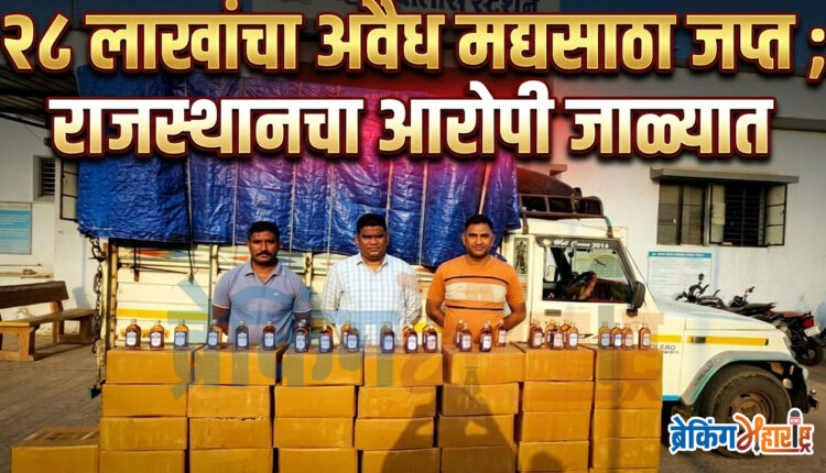 Major Operation by Nandurbar Crime Branch: Illegal Liquor Stock Worth ₹28 Lakhs Seized; Accused from Rajasthan Nabbed नंदुरबार (25 एप्रिल 2026) : अवैधरित्या विदेशी दारुची वाहतूक करताना नंदुरबार गुन्हे शाखेने तब्बल 28 लाखांचा अवैध मद्यसाठा जप्त केला आहे. या कारवाईने अवैधरित्या मद्याची वाहतूक करणार्या तस्करांच्या गोटात मोठी खळबळ उडाली आहे. या प्रकरणी राजस्थान राज्यातील आरोपीला पोलिसांनी अटक केली आहे.