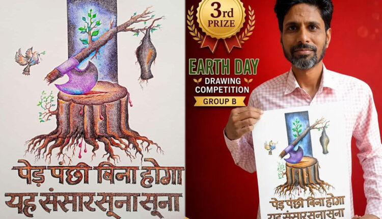 Chopda Makes a Mark in International Art Competition : Anilraj Patil’s Painting Secures Third Place चोपडा (26 एप्रिल 2026) : उत्तराखंड येथील नैनीताल शहरातील आंतरराष्ट्रीय पातळीवर मिट्टीसे रंग तक सांस्कृतिक संस्था यांच्या अंतर्गत 23 एप्रिल 2026 जागतिक पृथ्वी दिवस निमित्त मोफत स्वरूपात अंतरराष्ट्रीय पातळीवर दोन गटात चित्रकला प्रतियोगिता व प्रदर्शन घेण्यात आली. यात देश भरातून कलावंत व कला विद्यार्थ्यांनी सहभाग नोंदवला. या चित्रकला स्पर्धेत कलावंतांनी आपल्या चित्राद्वारे पृथ्वीचे होणारे, जल प्रदूषण, वृक्ष तोड अशी चित्र संकल्पना चित्रातून मांडली. चोपडा येथील गणेश मूर्तिकार अनिलराज पाटील यांच्या चित्राला या स्पर्धेत तिसरा क्रमांक प्राप्त झाला.