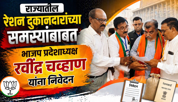 राज्यातील रेशन दुकानदारांच्या समस्यांबाबत भाजप प्रदेशाध्यक्ष रवींद्र चव्हाण यांना निवेदन