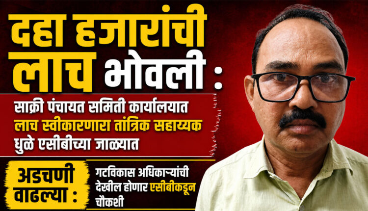 दहा हजारांची लाच भोवली : साक्री पंचायत समिती कार्यालयात लाच स्वीकारणारा तांत्रिक सहाय्यक धुळे एसीबीच्या जाळ्यात