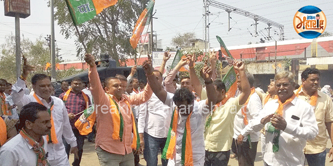 Bhusawal Bjp Celebration भुसावळ : पंतप्रधान नरेंद्र मोदी यांच्या नेतृत्वावर विश्वास ठेवून देशातील पाच पैकी चार राज्यात भाजपाला मतदारांनी स्पष्ट कौल दिल्यानंतर भुसावळातील स्थानिक भाजपा पदाधिकार्यांनी वाद्याच्या तालावर थिरकत, फटाके फोडून व बुंदीचे लाडू वाटप करून गुरुवारी दुपारी आनंदोत्सव साजरा केला. उत्तरप्रदेशसह उत्तराखंड, गोवा मणिपूर या चार राज्यात भाजपाला मतदारांनी कौल दिल्याचे स्पष्ट झाल्यानंतर शहरातील बाजारपेठ पोलिस ठाण्यासह जामनेर रोडवरील शिवाजी कॉम्प्लेक्सखाली भाजपा पदाधिकार्यांनी ढोल-ताशांच्या गजरात नृत्य करीत पंतप्रधान नरेंद्र मोदी व भाजपाचा जयघोष केला.