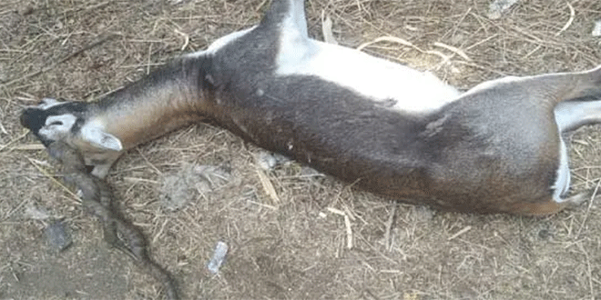 मंगळवारी दुपारच्या उन्हात पाण्याच्या शोधात असलेले काळवीट गडखांब ते दहिवद रस्त्याच्यामध्ये मंगळवार, 19 रोजी अज्ञात वाहनाच्या जोरदार धडकेने ठार झाले. तोंडाला आणि कमरेला जबर मार लागल्याने काळवीटचा मृत्यू झाल्याचे सांगण्यात आले. वनपाल पी.जे.सोनवणे यांना माहिती कळवण्यात आल्यानंतर त्यांनी तत्काळ वन कर्मचारी पाठवत मृत काळवीट ताब्यात घेऊन शव विच्छेदनासाठी हलवले नंतर मृत काळवीटावर अंत्यसंस्कार करण्यात आल्याची वनपाल सोनवणे यांनी दिली.