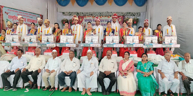 भुसावळ : शहरातील संतोषी माता सभागृहात मंगळवारी भोरगाव लेवा पंचायतीतर्फे मंगळवारी सामूहिक विवाह सोहळा झाला. प्रसंगी दहा जोडपी विवाह बंधनात अडकली. विवाहापूर्वी जोडप्यांचे समुपदेशन करण्यात आले व त्यानंतर त्यांनी एकमेकांचे जीवनभर आयुष्याचे साथीदार होण्याचा निर्णय घेतला. मंगळवार, 19 एप्रिल रोजी भोरगाव लेवा पंचायतीतर्फे दहा वधू-वरांचे वैदिक पध्दतीने विनामूल्य विवाह लावण्यात आला. संस्थेतर्फे प्रत्येक जोडप्याला गॅस शेगडी, सिलेंडर, मिक्सर, कुकर, संसारोपयोगी साहित्य व आंदण वितरीत करण्यात आले. सामाजिक समस्या व खर्चिक लग्न पध्दतीला फाटा देत या विवाह सोहळ्याचे मंगळवारी आयोजन करण्यात आले.
