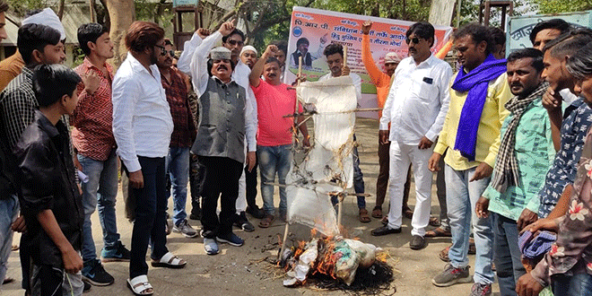 फैजपूर : शहरात संविधान आर्मी व पीआरपीतर्फे मनसे अध्यक्ष राज ठाकरे यांच्या अटकेच्या मागणीसाठी आंदोलन करण्यात आले व राज ठाकरे यांच्या पुतळ्याचे दहन करण्यात आले.