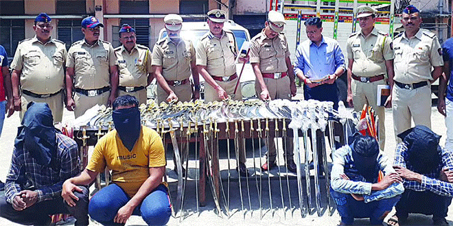 शिरपूरजवळील वाघाडी फाट्याजवळ बुधवारी सकाळी साडेसात वाजेच्या सुमारास स्कॉर्पिओ (क्रमांक एम.एच.09 सी.एम. 0015) मधून सोनगीर पोलिसांनी 89 तलवारी व खंजीर जप्त केला होता. या प्रकरणी संशयीत आरोपी मोहम्मद शरीफ मोहम्मद शफिक (35, सिद्धार्थ नगर, चंदन जिरा, वैशाली किराणाजवळ, जालना), शेख इलियास शेख लतिफ (32, सिद्धार्थ नगर, चंदन जिरा, वैशाली किराणाजवळ, जालना), सैय्यद नईम सैय्यद रहिम (29, सुंदर नगर, चंदन जिरा, एस.टी.वर्कशॉपमागे, जालना), कपिल विष्णू दाभाडे (चंदनजिरा, पंचशील नगर, बुद्धविहाराजवळ, जालना) यांना अटक करण्यात आली होती.
