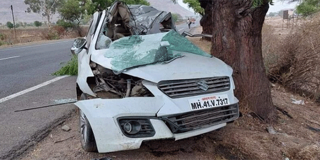 Car Accident On Manmad भीषण अपघातात चौघे मित्र जागीच ठार : भरधाव कार झाडावर आदळल्याने अपघात