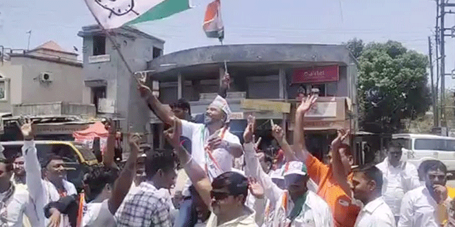 जल्लोषप्रसंगी राष्ट्रवादी काँग्रेसचे शहराध्यक्ष राजू माळी, माजी सभापती विलास धायडे, दशरथ कांडेलकर, पंचायत समितीचे माजी सदस्य किशोर चौधरी, आसीफ बागवान, प्रवीण पाटील, बापू ससाणे, नगरसेवक शेख शकील, संदीप जुमले, बबलू सापधरे, सुनील काटे, आमिन खान, दीपक साळुंके, पवनराजे पाटील, नंदू हिरोळे, शिवराज पाटील यांच्यासह राष्ट्रवादी काँग्रेस पक्षाचे कार्यकर्त्यांनी प्रवर्तन चौकात डिजेवर राष्ट्रवादी पुन्ह, या गाण्यावर ठेका धरीत जल्लोष साजरा केला.
