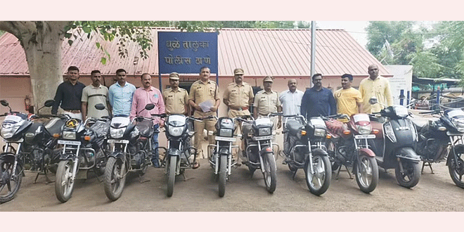 Three Two-Wheelers Stolen from Jalgaon, Dhule and Nashik Districts Were Caught By The Police धुळे : जळगावसह धुळे व नाशिक जिल्ह्यातून चोरलेल्या तब्बल दहा दुचाकींसह त्रिकूटाला धुळे तालुका पोलिसांनी बेड्या ठोकल्या आहेत. योगेश शिवाजी दाभाडे (रा.बळसाणे, ता.साक्री), अंकुश एकनाथ शिरसाठ (रा. डकी, ता.चाळीसगाव) व विजय साईनाथ चव्हाण अशी अटकेतील आरोपींची नावे आहेत. बोरकुंड येथील दुचाकी चोरीच्या तपासादरम्यान योगेश दाभाडे पोलिसांच्या हाती लागल्यानंतर एक-एक कडी उलगडली.