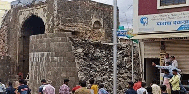 The stone door of the historic bastion collapsed in Amalner अमळनेरात ऐतिहासीक बुरूजाचा दगडी दरवाजा कोसळला : दोघे जखमी
