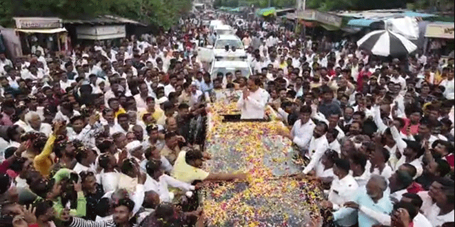 गुरुवारी सकाळी दहा वाजेपासून मुक्ताईनगर शहरातील प्रवर्तन चौकात मतदारसंघातील शिवसेना पदाधिकारी व कार्यकर्त्यांची गर्दी जमली. श्री क्षेत्र कोथळी येथे आदिशक्ती श्री संत मुक्ताईचे दर्शन घेऊन 12 वाजेच्या दरम्यान आमदार चंद्रकांत पाटील यांचे प्रवर्तन चौकात आगमन होताच ढोल-ताशांच्या गजरात व फटाक्यांच्या आतषबाजीत आमदार पाटील यांचे जंगी स्वागत करण्यात आले. प्रवर्तन चौकातील महामानवांच्या पुतळ्यांना पुष्पहार अर्पण करून आमदार पाटील यांनी अभिवादन केले. नंतर उघड्या जीप वर उभे राहत त्यांचे निवासस्थानापर्यंत रॅली काढण्यात आली.