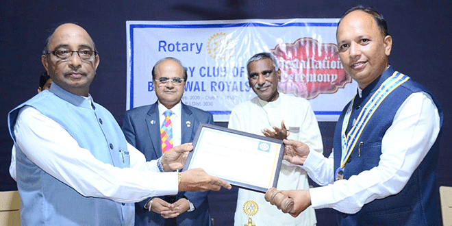 भुसावळ : रोटरी क्लब ऑफ भुसावळ रॉयल्सचा पदग्रहण समारंभ रोटरी हॉलमध्ये झाला. यावेळी नवनिर्वाचित अध्यक्ष प्रसन्न पांडे आणि सचिव म्हणून सागर विसपुते यांनी पदभार स्वीकारला. या पदग्रहण समारंभाला माजी खासदार डॉ.उल्हास पाटील आणि रोटरीचे माजी प्रांतपाल राजीव शर्मा प्रमुख पाहुणे म्हणून उपस्थित होते.