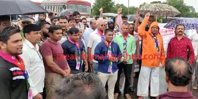 Yuva Swabhiman Party’s Rasta Roko Andolan for completion of unfinished works near Phulgaon