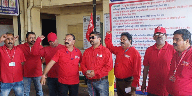 रनिंग स्टाफच्या विविध न्याय मागण्यांसाठी भुसावळात एनआरएमयूचे धरणे आंदोलन